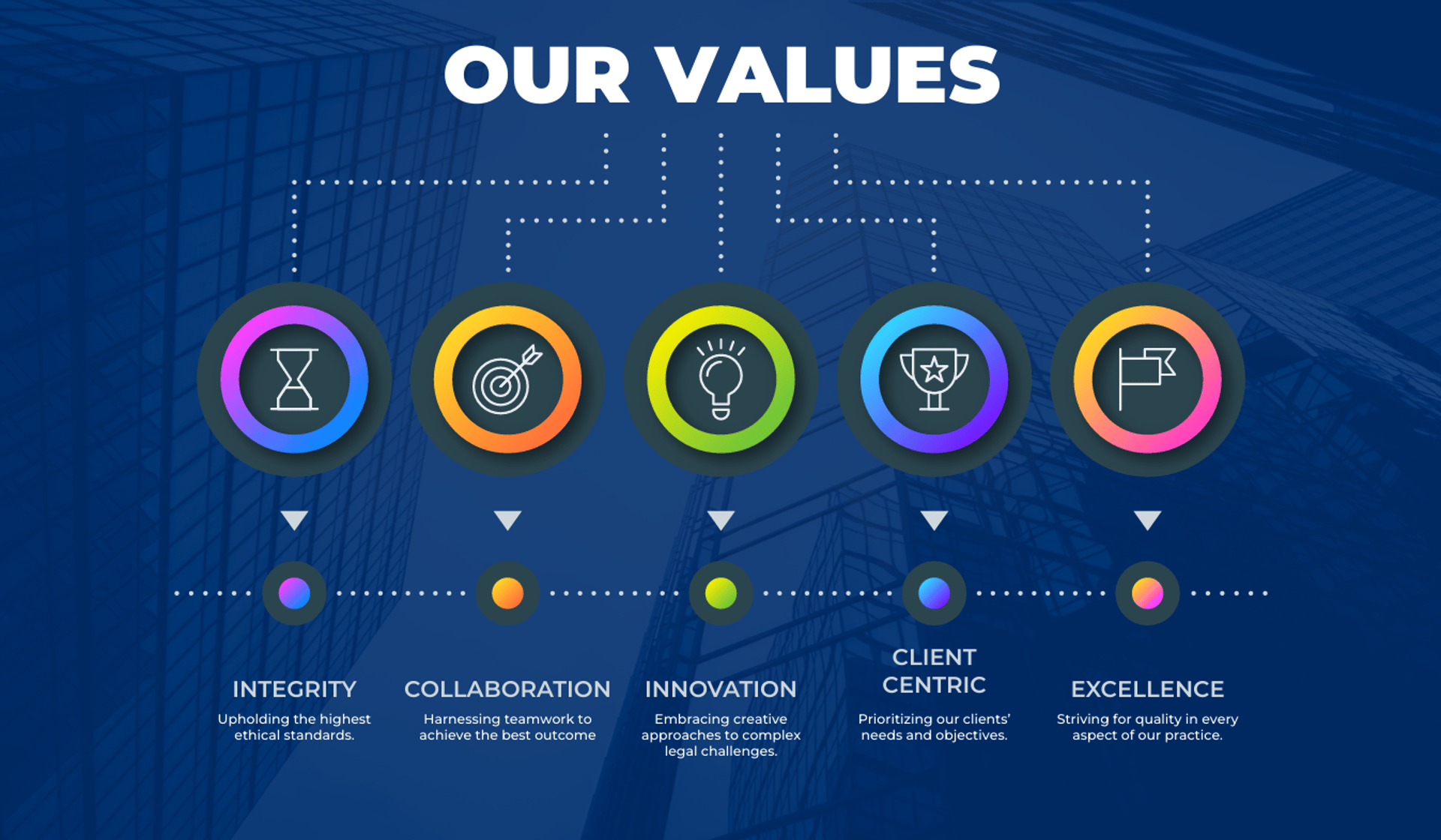 To deliver top-tier legal solutions that empower our clients to achieve their goals. We are dedicated to providing personalized attention, strategic advice, and unwavering advocacy in every case we handle.